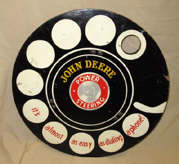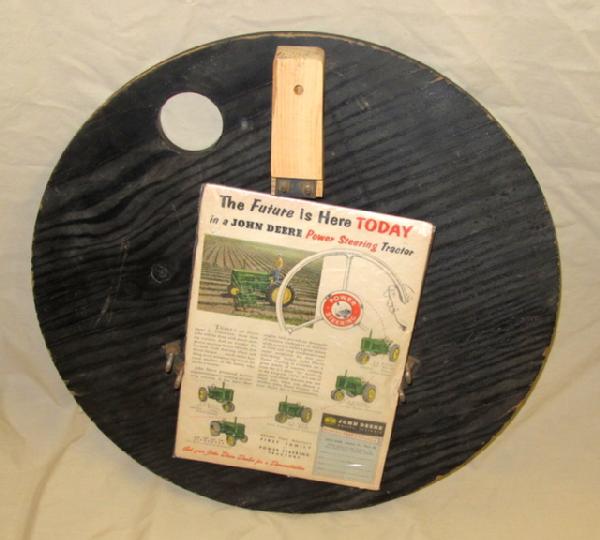 Another super original condition piece. Was designed to be clamped to a steering wheel of a new 60 or 70 tractor when power steering came out to show how easy it was. Has the bolts still to attach it to the steering wheel and paint is very nice with only minor wear