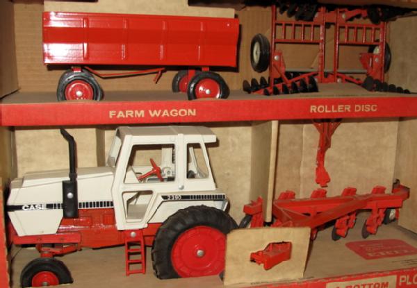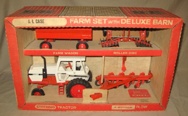 mint to near mint toys, unusual w/ orange wheel wagon and white wheeled disc. Box is nice, rates 8.5 condition with only normal wear from age and storage