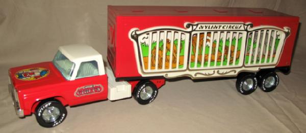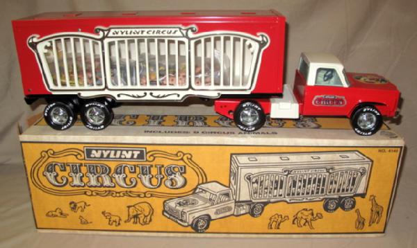 Mint toy with paper inserts in trailer, animals and even the cardboard insert for between the cab and trailer! Box is also mint! Great piece!
