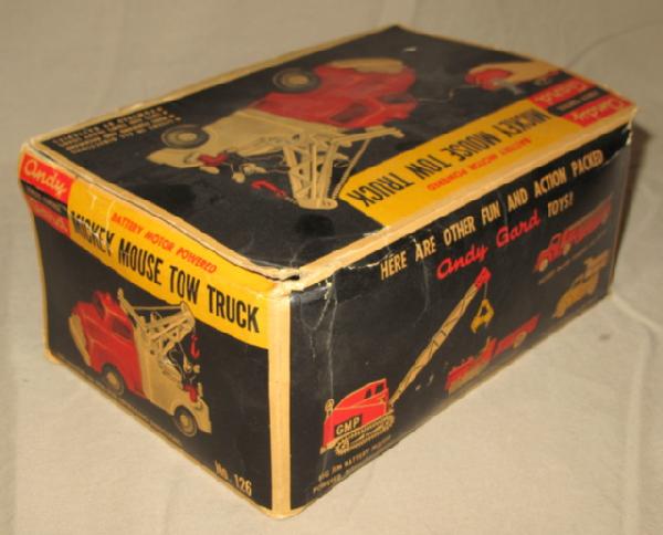 Unusual Disney toy! Toy looks to be near mint, except remote has warped some with age. Box is complete, no liner, overall rates 8 condition with some corners crushed.