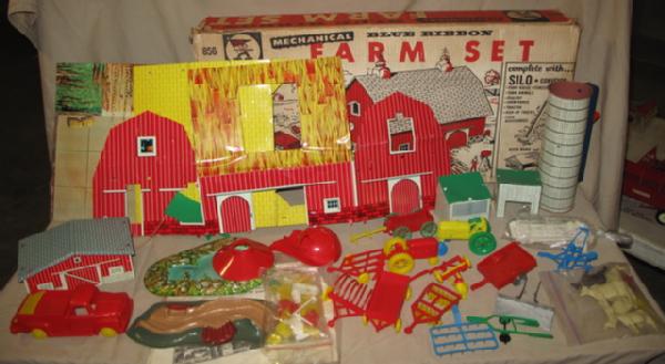 Large set, box is 31" long. Don't know if 100% complete, but looks like it is very possible that it is all there. Box has quite abit of tape on the flap, overall box rates 7 condition. Nice graphics, and toys are very nice