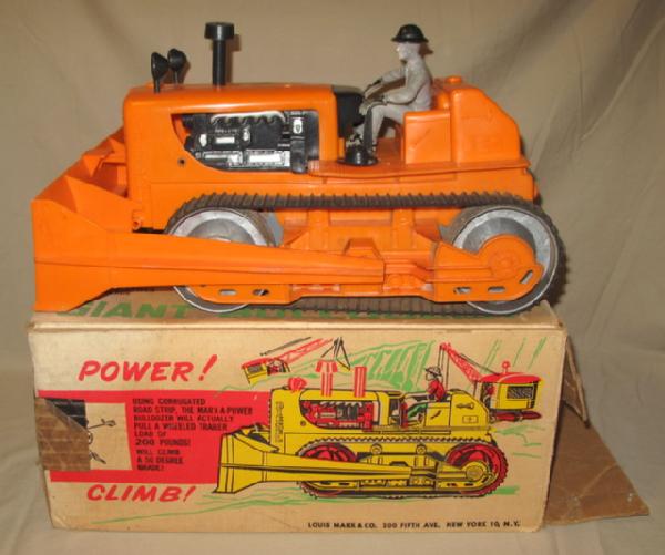 Large, battery op plastic toy, has some play wear, but looks complete, did not test. Box has nice graphics, box has some general wear, rates 7.5 condition