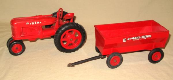 Steering column is broken on tractor, otherwise nice; wagon has light warping, sells 2x the money