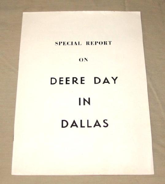12 pages, excellent condition, Deere Day in Dallas is when they introduced the New Generation of tractors to the Dealers, shows a great picture of them using toys to mock-up the grounds display, near mint and unique