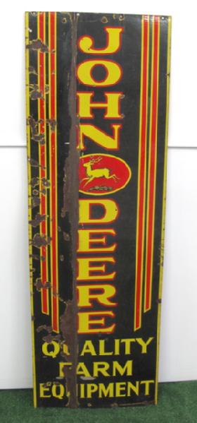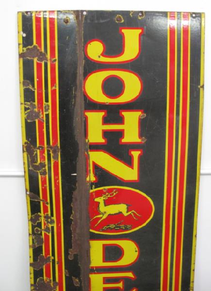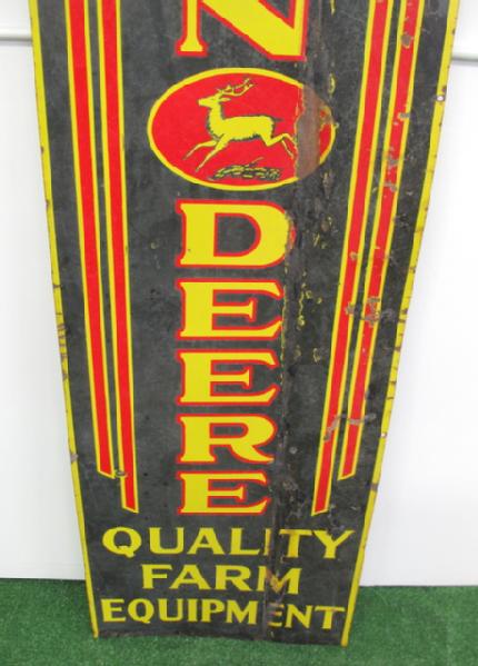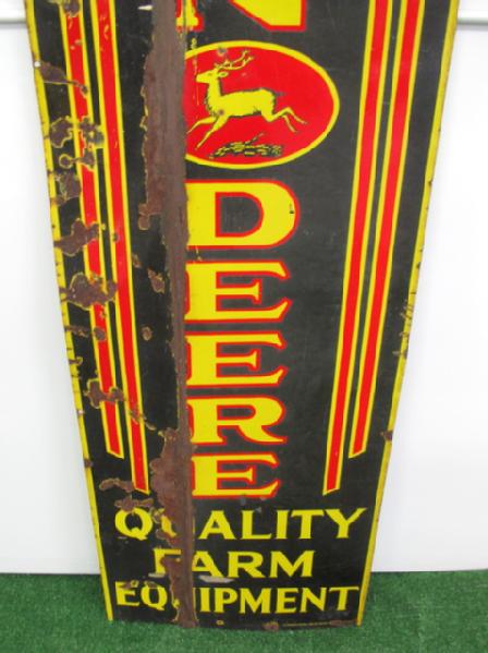 original sign, variation with "Quality Farm Equipment" on the bottom, has a crease running the entire length of the sign, overall condition for both sides is about a 6. Not the best condition in the world, but a very hard sign to find in any condition