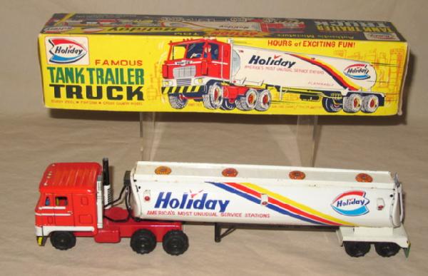 12" long, toy has some light wear, box is nice with nice graphics, WHITE COE Semi Truck