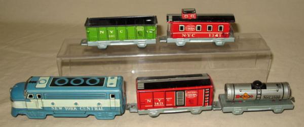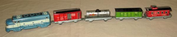 engine is 5" long, missing one wheel, otherwise pretty good original paint