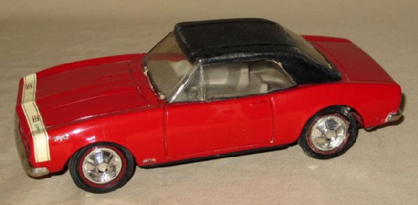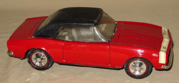 no maker's mark, has some wear and extra decals put on the toy, 9" long