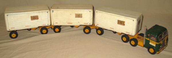 about 28" long hitched, all pieces have some play wear, overall rates about 80% condition