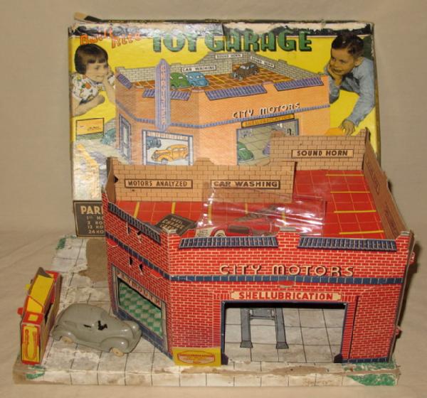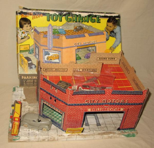 neat set, includes one original rubber car, base has quite abit of water damage, 17"x10", still a neat set with the original box