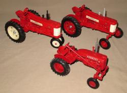 #450 - (3) Scale Models Tractors--Case CC, Farmall Regular, and H on steel