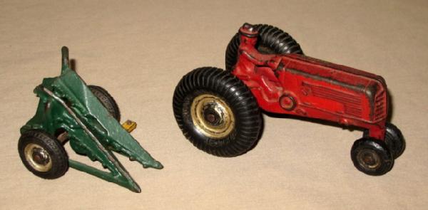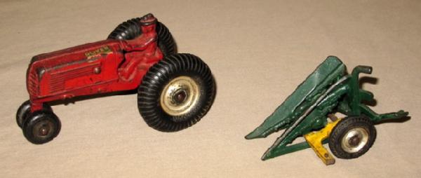 Corn binder has a broken hitch and is an older repaint, tractor is original, sells 2x the money