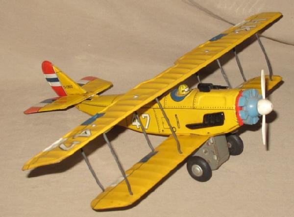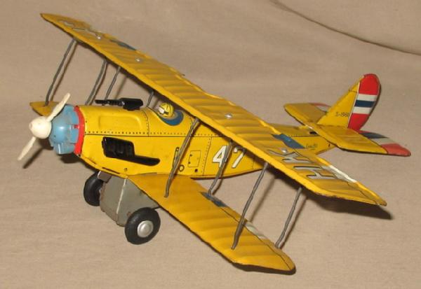 15" wingspan, 12" long, Friction drive, but prop doesn't turn, light wear