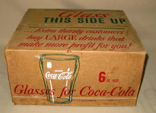 Box is still sealed and comes w/6 dozen 6oz. Coke glasses. Made by Libbey; box is 16"x17"; prefer local pickup due to glass & weight
