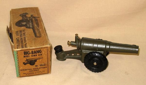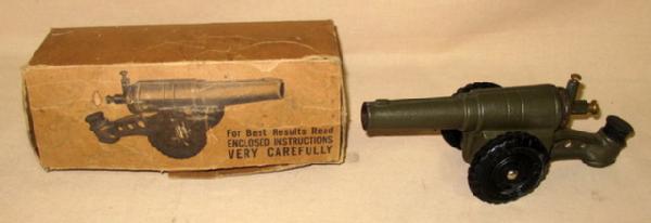 toy is mint; box has water damage; has a half a tube of Bangsite; cannon is 9" long