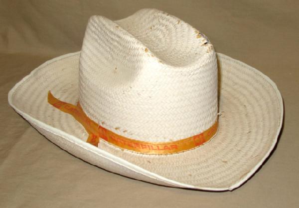 has the "CATERPILLAR" logo on the ribbon, size 7, small hole in the top and light wear