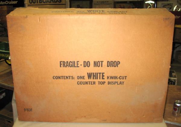 Very unique mechanical sign, move lever side to side and sickles move, small tear in the cardboard by the lever, otherwise near mint. 34" wide, 24" tall, comes with the original box, neat piece for the Oliver-Minneapolis-Moline-white Collector!