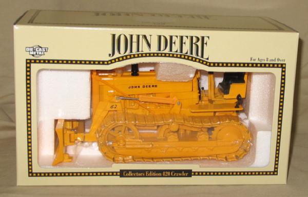 Large Sign & Advertising Auction featuring Beer & Tobacco! 15 Ohio Street, Wakonda, SD 57073 100's of signs, trays, tins, crates, lights & more! Great variety & very clean condition! Most from a single South Dakota collector! Catalog | Terms of Auction | Print Catalog Catalog | Terms Back to Catalog #137 – (6) JD 420 Ind. Crawler w/ Blade & Metal Tracks 6x the money More Details 6x the money Location: 15 Ohio Street, Wakonda SD, 57073 Sold High Bid: $22.50 bidding history Auction Type: Quantity x Price Quantity: 6 Back to Catalog