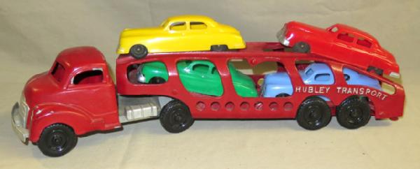 metal toy with plastic cars, about 18" long, sells as a set