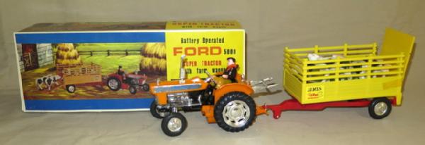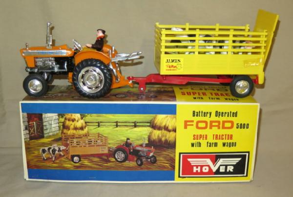Unusual set, a little smaller than 1/16th scale, but not much, plastic battery operated toy made in Hong Kong; Mint toys, mint box, even has all the box liners and the cardboard insert to hold the cattle into the trailer; never seen this toy before and this one is MINT!