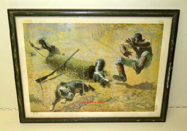 neat graphic with the skunk coming out of the log, 20"x15", has some wear
