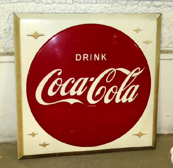 36"x36", great color, gold on the frame and stars has faded some, overall rates 8.5 condition, great looking sign!