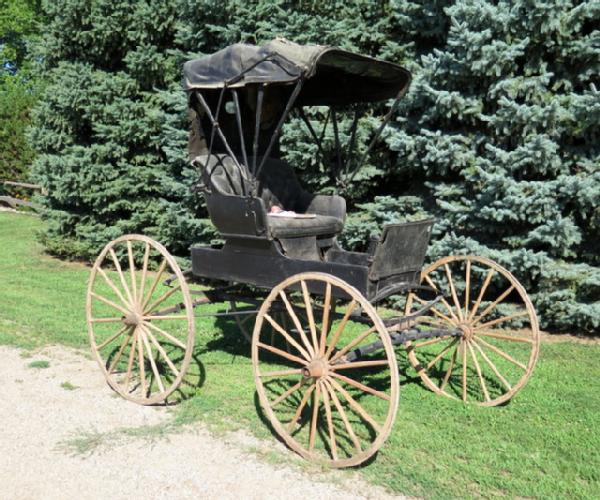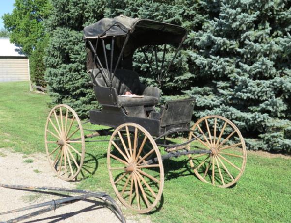 original buggy that has been partially restored, good tag, wheels were gone through and straighted, otherwise mostly original.