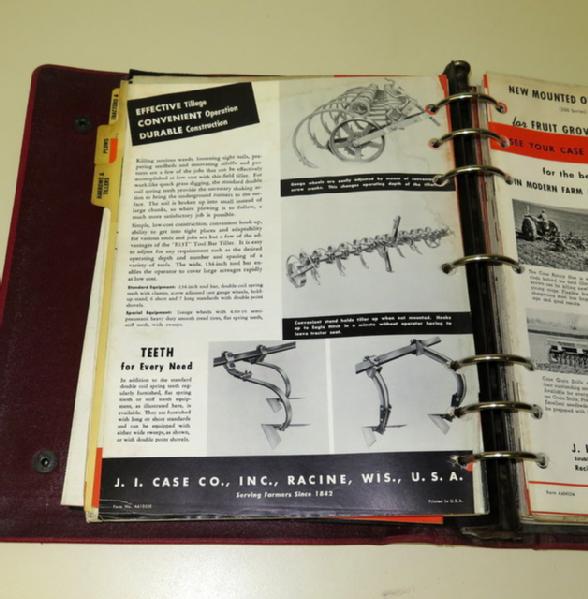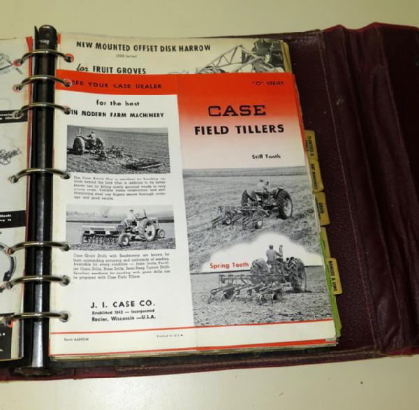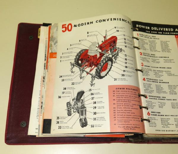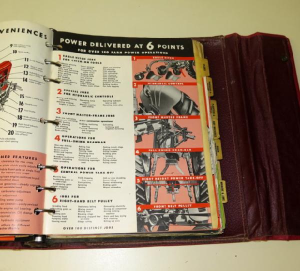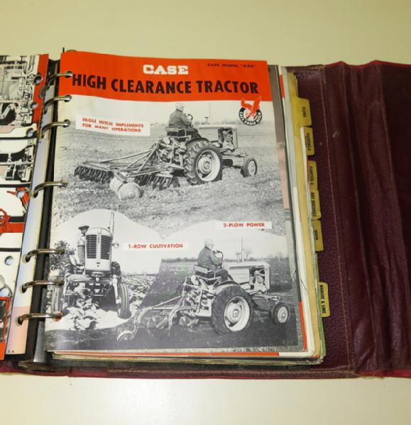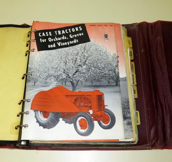Dealer catalog made up almost entirely of sales brochures in a binder, includes the V-S-D-series orchard tractors, VAH & VAS Tractors, plus many implements, some general wear, but overall a nice piece