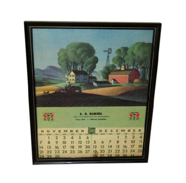 Unique Art-Deco farming print, only has one calendar page left, about 16"x14", framed
