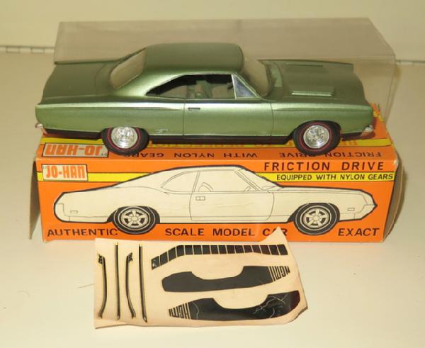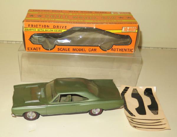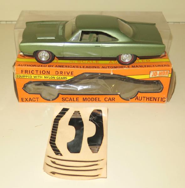Dark Green with redline tires, toy looks to be near mint, box is nice with light wear, decals included, but look brittle