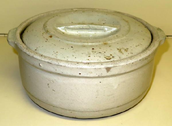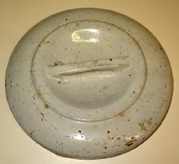 has large crack around the base and small chip on the handle, advertising is very nice, good lid, hard to fin