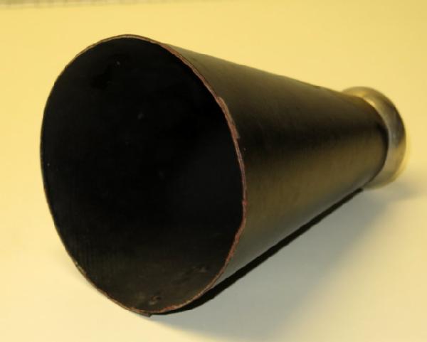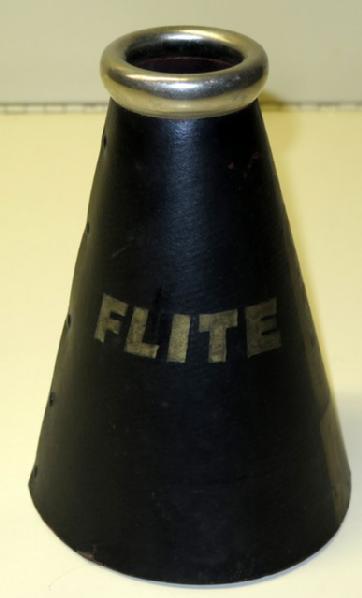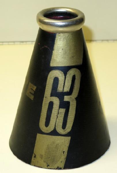 Heavy cardboard with metal mouth piece, no logo, but from the Flite 63 Campaign to see the unveiling of the 20-series JD Tractors, 7.5" tall, 5" diam at the widest point