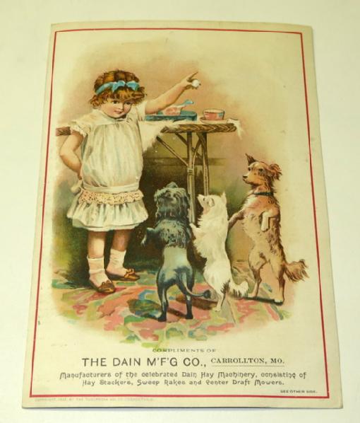 Pre-JD, 8.5"x5.75", light wear, nice image with a little girl and 3 dogs