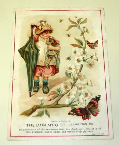 has the advertising on the back, but was removed from a scrape book, so has quite abit of graphic loss, 8.5"x5.75"