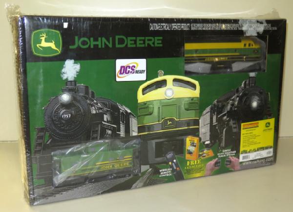 includes 2 motored F-3 Diesel Engine, Box Car, Flat Car with tractors, Steel Caboose, Power supply, track & mower; still sealed, hard to find