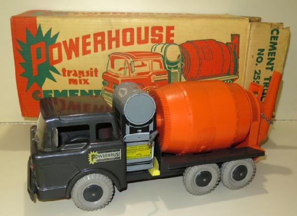 Tin Truck with plastic drum, light wear, good box with some light wear