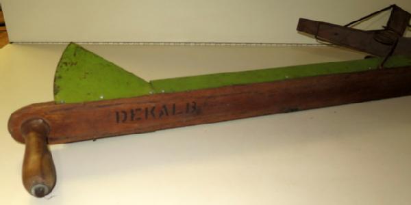 better paint and condition than the previous lot, but only has DEKALB stenciling, 34" long, another great & unique DeKalb piece!