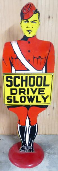58" tall, 18" wide, SST has some light fading and wear, but overall a very good original, rates 8 condition; not the original stand, but nicely made to display this in your collection