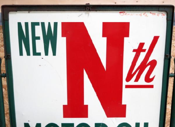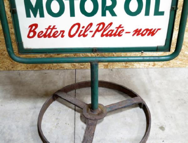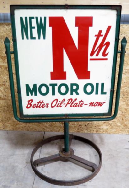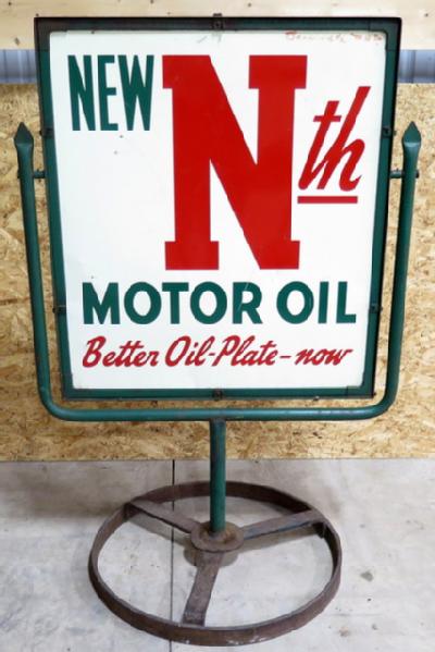 good original, both sides about 8 condition, base is correct, but paint is poor on base, 56"x38" including the stand