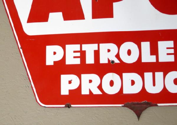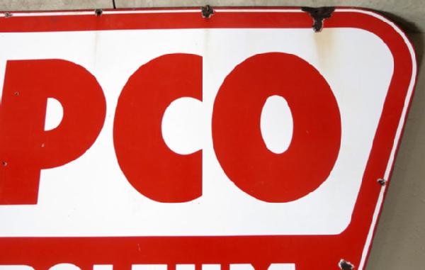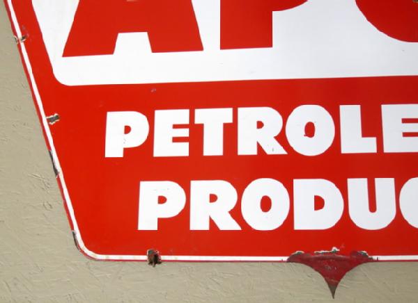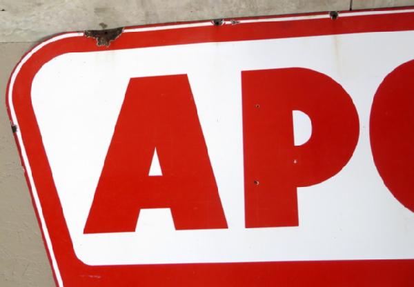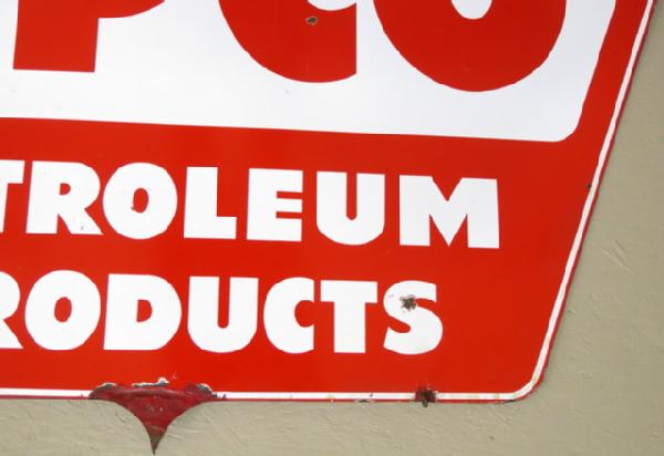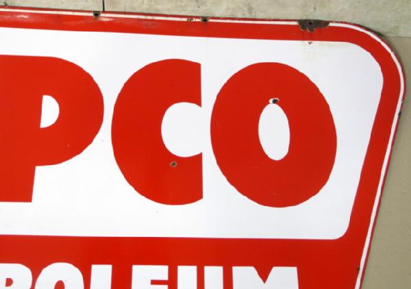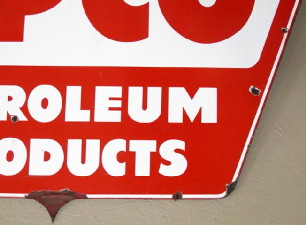 Large ID sign for a pole, the tip on the bottom is completely chipped off and poorly repainted, overall rates 7.5 condition