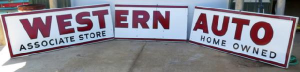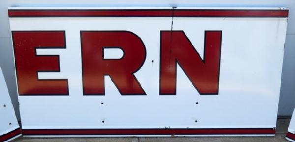 about 20' long overall, 33" tall, comes into 3pcs for easier display, overall nice, has a tar run on one piece that should clean off, some small holes in the bottom, I believe to put the name of the store