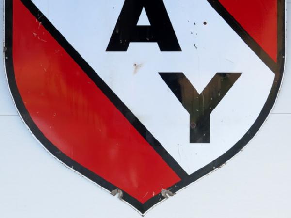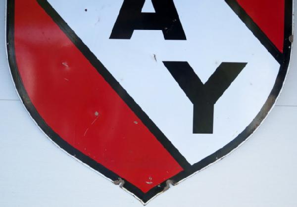 6'x5', has some damage to the bottom tip, some general wear, harder to find ID sign