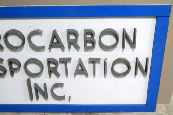 believe these are the letters off the main office and have been attached to a board to display; each letter is cast aluminum and bolted to a piece of plywood, over 100 small bolts! 7'x38"