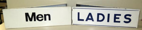 same shape and size, but Ladies is in blue and Men's is in black, 20"x6", both have light wear, sells as a set for one money