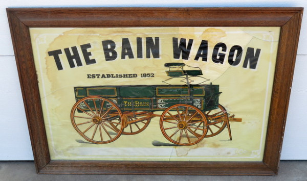 nice graphics, but poster has heavy water damage, old frame, glass is broken, 42"x29" overall