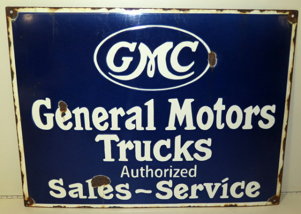 23.5"x18", rough edges and some large chips, heavy porcelain; I think this is an older, reproduction sign that has been aged, but you be the judge