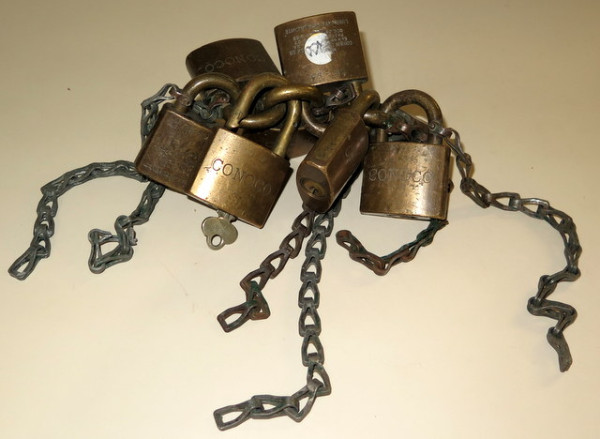 all old originals, includes an original key that it appears works for all the locks, normal used condition, sells 7x the money