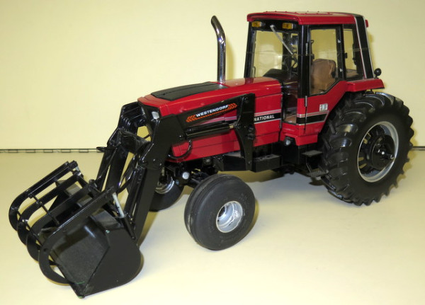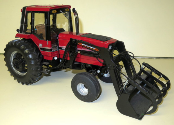 full custom, lots of detail, 3pt w/ quick hitch, hoses on the loader, Chrome stack, super sharp