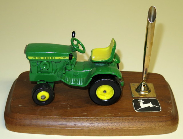 vintage original 140 2-lever mounted to wood plaque w/ 2-leg logo, missing the pen, minor wear