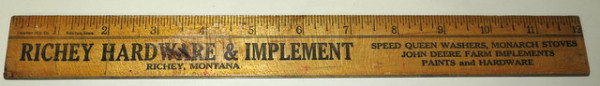 early, advertises John Deere Farm Implements, Speed Queen Washers, Monarch Stoves, advertising on both sides, some wear
